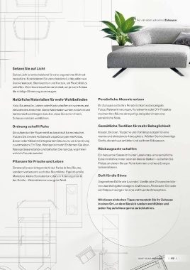 schaffen. Mutigere Farben können als Akzente in Form von Kissen, Vorhängen oder Wand- Monstera, kleine Sukkulenten oder ein Kräutergarten in Duft für die Sinne